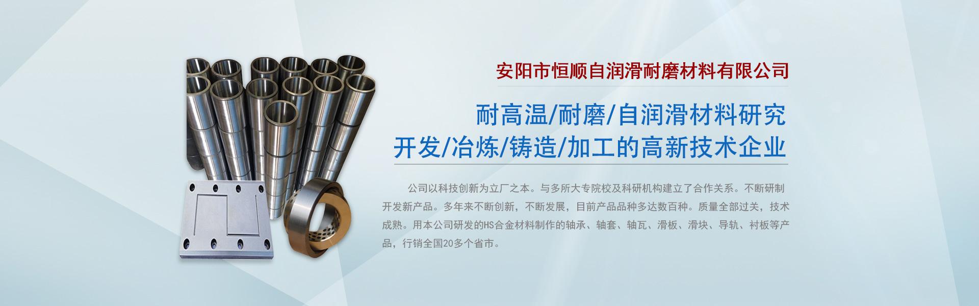 鐢ㄥ績鐮斿彂鐢熶駭路 涓撻棬浠庝簨鑰愰珮娓┿佽愮(銆佽嚜娑︽粦鏉愭枡鐮旂┒銆銆瀹夐槼甯傛亽欏鴻嚜娑︽粦鑰愮(鏉愭枡鏈夐檺鍏徃錛屾槸涓撻棬浠庝簨楂樼~鍚堥噾杞存壙,楂樻俯鑰愮(杞存壙,鑷鼎婊戣醬鎵跨瓑鑰愰珮娓╋紝鑰愮(錛岃嚜娑︽粦鏉愭枡浜у搧鐮旂┒銆佸紑鍙戙佸喍鐐箋侀摳閫犮佸姞宸ョ殑楂樻柊鎶鏈紒涓氥?br/>銆銆鍏徃浠ョ鎶鍒涙柊涓虹珛鍘備箣鏈備笌澶氭墍澶т笓闄㈡牎鍙婄鐮旀満鏋勫緩绔嬩簡鍚堜綔鍏崇郴銆備笉鏂爺鍒跺紑鍙戞柊浜у搧銆傚騫存潵涓嶆柇鍒涙柊錛屼笉鏂彂灞曪紝鐩墠浜у搧鍝佺澶氳揪鏁扮櫨縐嶃傝川閲忚繃鍏籌紝鎶鏈垚鐔熴傜敤鏈叕鍙哥爺鍙戠殑HS鍚堥噾鏉愭枡鍒朵綔鐨勮醬鎵褲佽醬濂椼佽醬鐡︺佹粦鏉褲佹粦鍧椼佸杞ㄣ佽‖鏉跨瓑浜у搧錛岃閿20澶氫釜鐪佸競銆傞傜敤鑼冨洿閬嶅強鍐墮噾銆佸緩鏉愩佺熆灞便佹満姊板埗閫犮佸彂鍔ㄦ満姊般侀榾闂ㄩ厤浠躲佺煶娌廣佸寲宸ャ佺漢緇囥佺叅鐭跨殑琛屼笟銆傜壒鍒湪楂樻俯銆佸灝樸侀噸杞姐佺己娌廣佺淮淇笉渚匡紝榪炵畫浣滀笟絳夋伓鍔g幆澧冩潯浠朵笅浣跨敤鍏鋒湁鏄捐憲鐨勬晥鏋?..